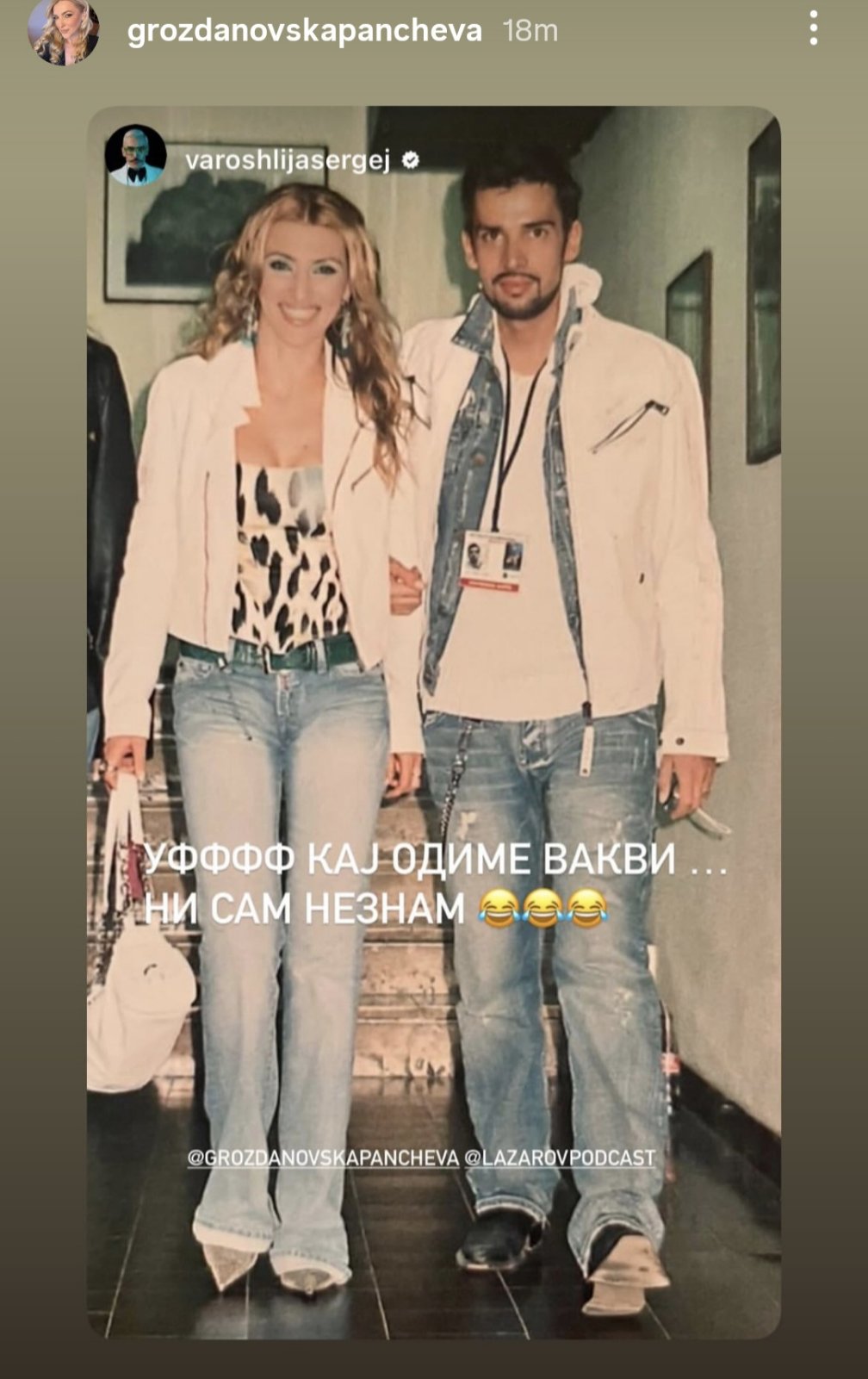 Пејачката Маја Гроздановска – Панчева вчера гостуваше во поткастот на Сергеј Варошлија, „Урок“, а познатиот стилист го најави нејзиното гостување на Инстаграм со неколку ретро фотографии од двајцата.