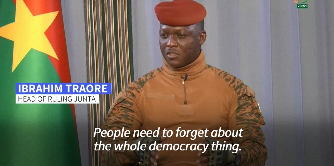 Воениот лидер на Буркина Фасо, Ибрахим Траоре, изјави дека „луѓето мора да заборават на демократијата“, како и дека „демократијата убива“.