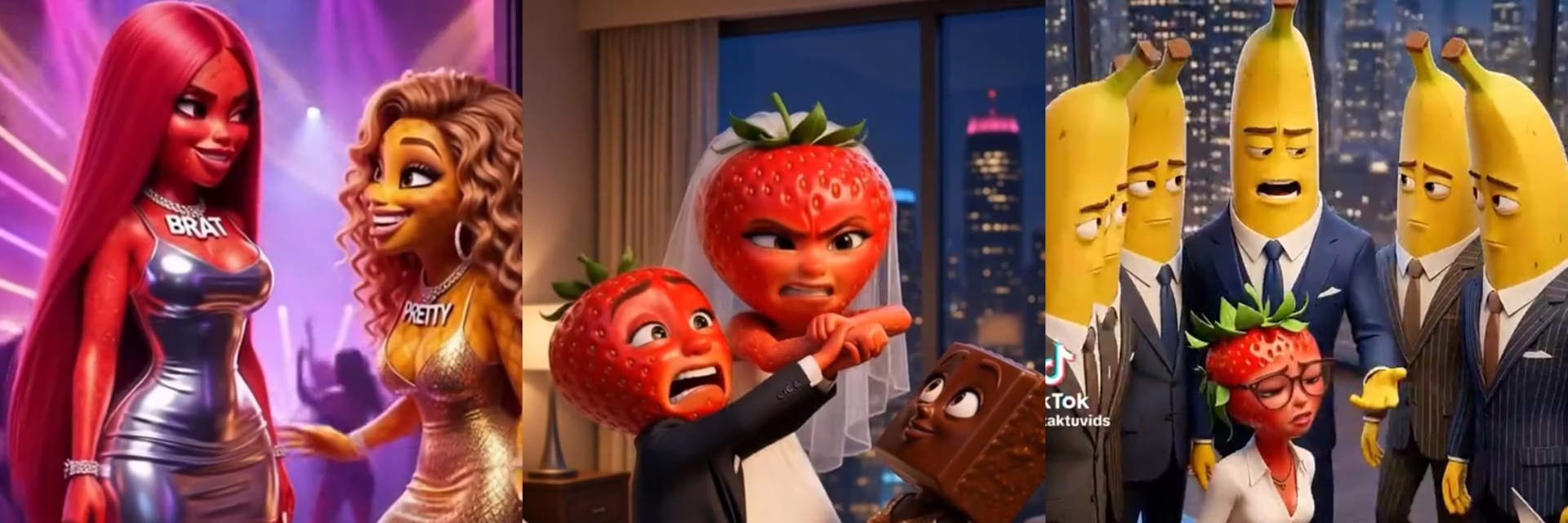 Видео-снимки направени со помош на вештачка интелигенција, во кои главни ликови се овошје и зеленчук во сценарија слични на ријалити програми, станаа вирални на ТикТок и бележат милиони прегледи, но експертите предупредуваат дека таквата содржина промовира родови стереотипи и родово базирано насилство и може да има негативно влијание врз публиката.