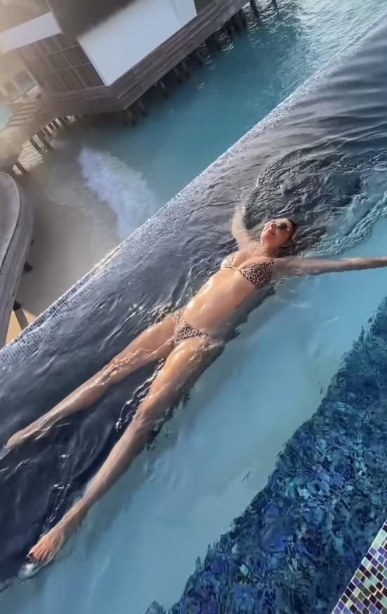 Без ни трошка шминка, занесната актерка изгледаше целосно природно додека се насмевнуваше на сонцето, покажувајќи ги своите совршено обликувани стомачни мускули. Опкружена со нарциси, бринетата малку остави на имагинацијата. Во описот на објавата, Лиз напиша: