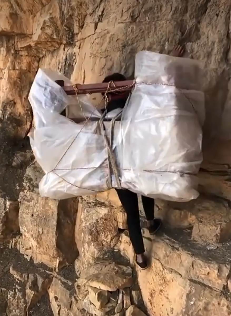 Сите транспортни средства се вршат на грб. Една вреќа со храна, алат или едноставен уред мора да се носи со часови по карпата, со огромен напор.