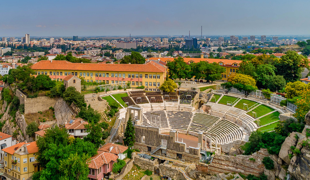 Пловдив, вториот по големина град во Бугарија, се наоѓа во јужниот дел од земјата, во централниот регион. Лежи покрај реката Марица и е сместен помеѓу шест ридови што се издигаат од тракиската рамнина до висина од 120 метри. Во тракискиот период се викал Пулпудева, а во 341 година п.н.е. бил преименуван во Филипопол откако бил освоен од Филип II Македонски. Од 46 година н.е. се викал Тримонтиум и бил главен град на римската провинција Тракија. Во текот на средниот век, Пловдив неколку пати ја менувал власта, сè додека во 1364 година не преминал во рацете на Турците, кои го нарекле Филибе. По Руско-турската војна (1877-1878), станал главен град на турска Источна Румелија, која се обединила со Бугарија во 1885 година. Официјално го добил сегашното име по Првата светска војна.