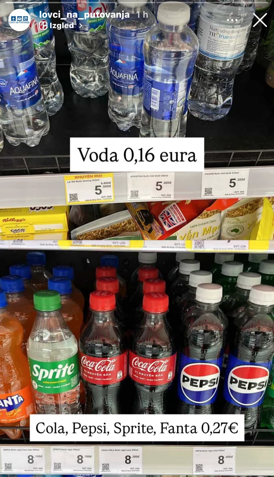 Блогерите за патување од Инстаграм профилот „Lovci na putovanja“ го споделија своето изненадување од цените во Виетнам, каде што цигарите во просек чинат 1 евро, флашираната вода чини помалку од 20 центи, а за лежалка на плажа треба да издвоите помалку од две евра.