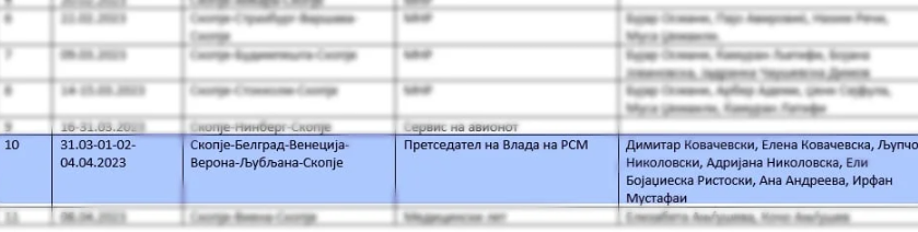 Службата за општи и заеднички работи забележала дека Димитар Ковачевски, како премиер, речиси половина од летовите ги направил заедно со сопругата, а во листата на патници се појавуваат и неговите деца. Сопругата, Елена Ковачевска, е регистрирана на 19 лета на државниот авион.