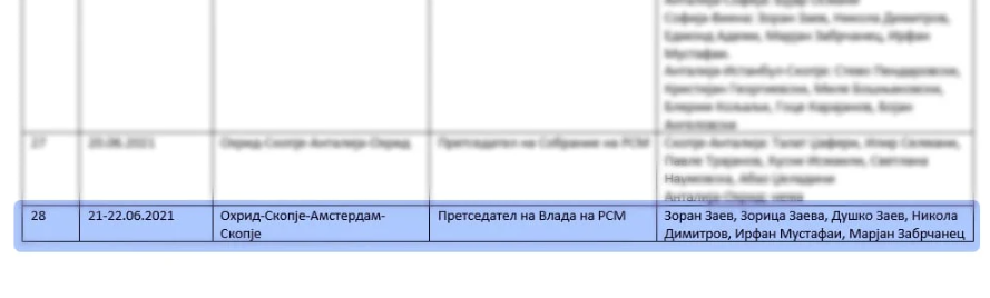Во државниот авион фамилијарно летал и Заев, како премиер. Самиот на социјалните мрежи во јуни 2021 година се пофали дека тогашниот премиер на Холандија го поканил заедно да го следат фудбалскиот натпревар Македонија-Холандија во Амстердам. На социјалните мрежи Заев објави фотографии од кои се гледа дека заедно со него навива и неговата сопруга, а податоците од Службата за општи и заеднички работи во Владата покажуваат дека со нив бил и нивниот син.