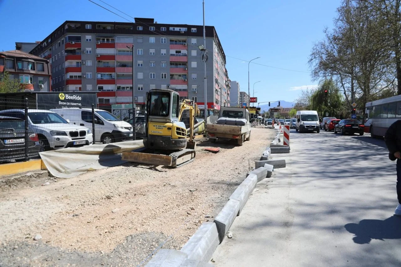Досега се поставени и бетонирани рабници на десната страна од улицата, со што се создава јасна поделба меѓу коловозот и просторот за пешаци, извести Општината.