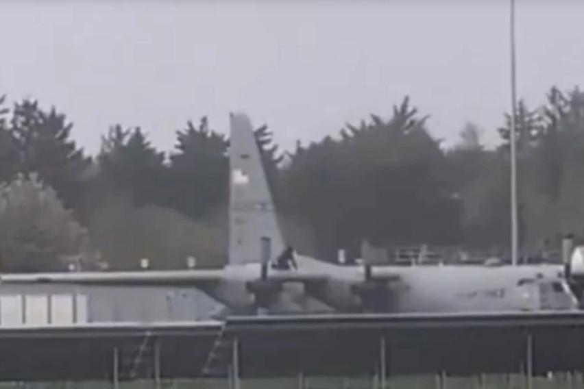 Снимките што кружат на социјалните мрежи го покажуваат мажот како се качува на транспортен авион C-130 Херкулес на американските воздухопловни сили, кој бил паркиран на оддалечена станица во округот Клер.