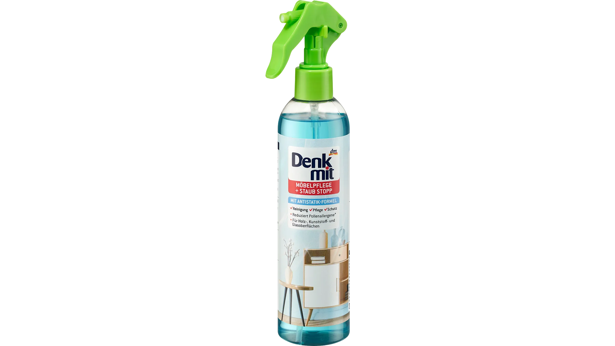 За одржување на мебелот, Denkmit спрејот за мебел и прашина со антистатична формула чини 119 денари. Овој производ е наменет за дрвени, пластични и стаклени површини, а истовремено чисти, штити и помага во спречување на повторно насобирање прашина. Благодарение на антистатичната формула, мебелот подолго останува свеж и сјаен, а производот придонесува и за намалување на алергени од полен, што е особено значајно во пролетниот период.