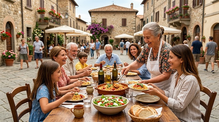Тајната на нивната исхрана лежи во изборот на намирници што се во сезона. Сезонското овошје и зеленчук обично содржат помалку конзерванси и индустриски додатоци. Висококвалитетната исхрана, богата со маслиново масло, зеленчук и цели житарици (медитеранска исхрана), долгорочно ги чува физичките и менталните функции и штити од хронични болести. За Италијанците, тоа не е привремена диета, туку начин на живот.