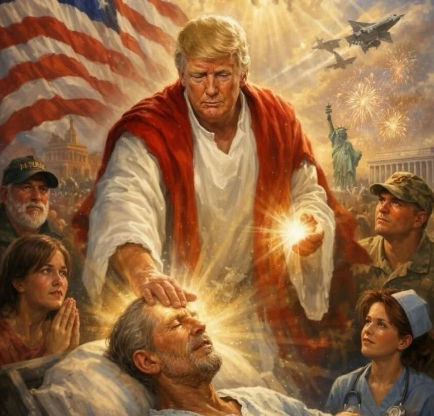 Претседателот на САД, Доналд Трамп, објави слика од Исус како го прегрнува, генерирана од вештачка интелигенција, на својата социјална мрежа Truth Social, со американското знаме во позадина.