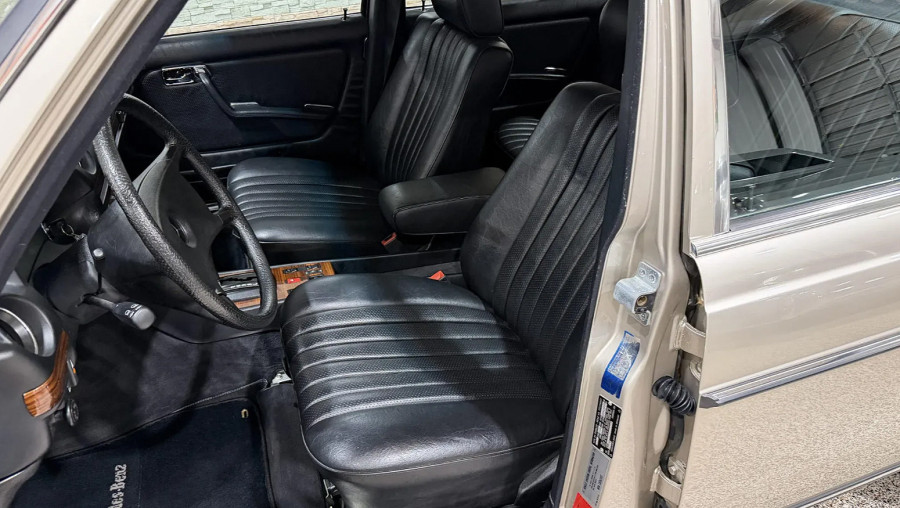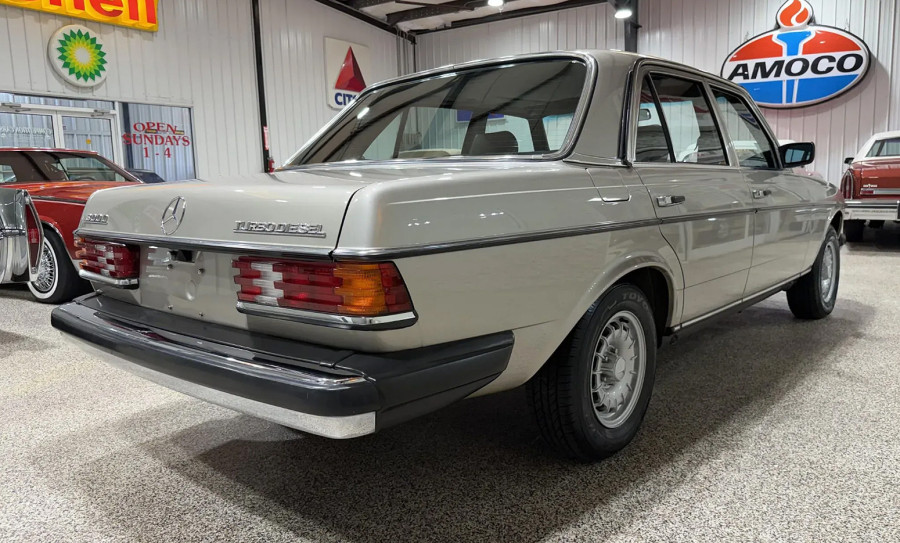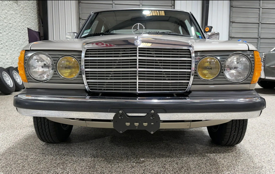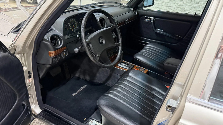Автомобилот е обоен во „Smoke Silver Metallic“ нијанса, а доаѓа со фабрички 14-инчни алуминиумски фелни, црно-хромирани браници и препознатливите класични линии на легендарната W123 серија.