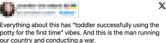 „Потсетува на моментот кога охрабрувате сенилен дедо затоа што изел цел пудинг“, гласи еден од најпопуларните коментари. Други, пак, забележаа дека целата сцена остава впечаток на мало дете кое успешно користи нешто за прв пат, забележувајќи колку е неверојатно што вакви работи се слават во најмоќната канцеларија во светот.