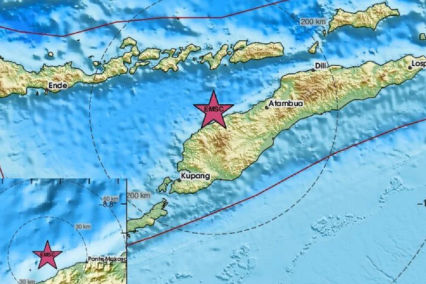 Како што објави државната геофизичка агенција, земјотресот се случил во морето покрај Тимор и нема опасност од цунами.