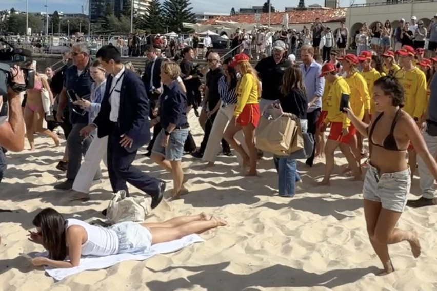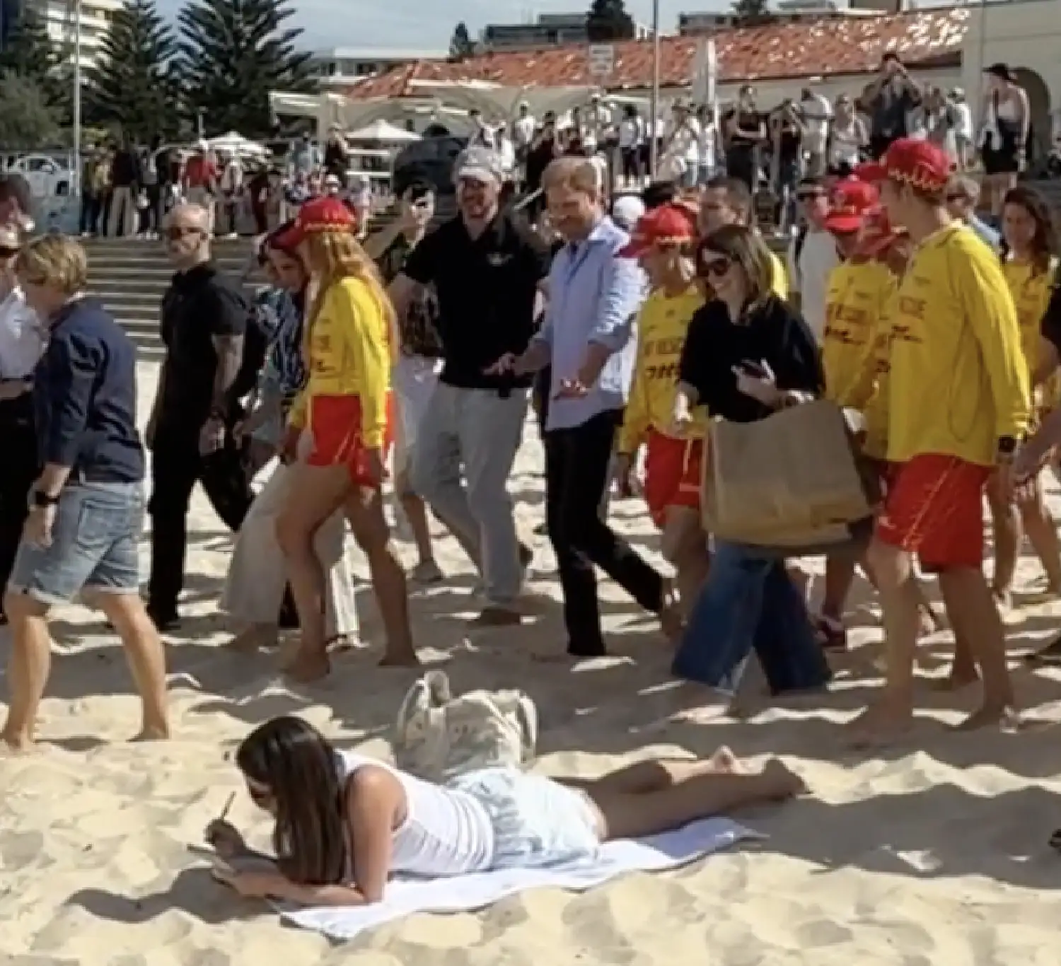 Една капачка на плажа стана вирална сензација откако беше снимена како одбива да се помести додека покрај неа минувале принцот Хари и Меган Маркл. Војводата и војвотката од Сасекс минатиот петок привлекоа огромна толпа луѓе на плажата Бонди во Сиднеј, иако таа посета не беше во нивниот официјален распоред.