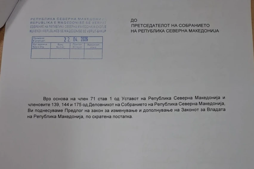 Пратеничката група на СДСМ поднесе Закон за измени на Законот за Влада по скратена постапка, забраната за двојно државјанство да важи за министрите, вицепремиерите и целиот состав на Владата и тоа веднаш.