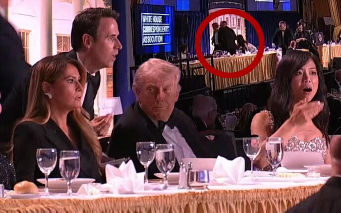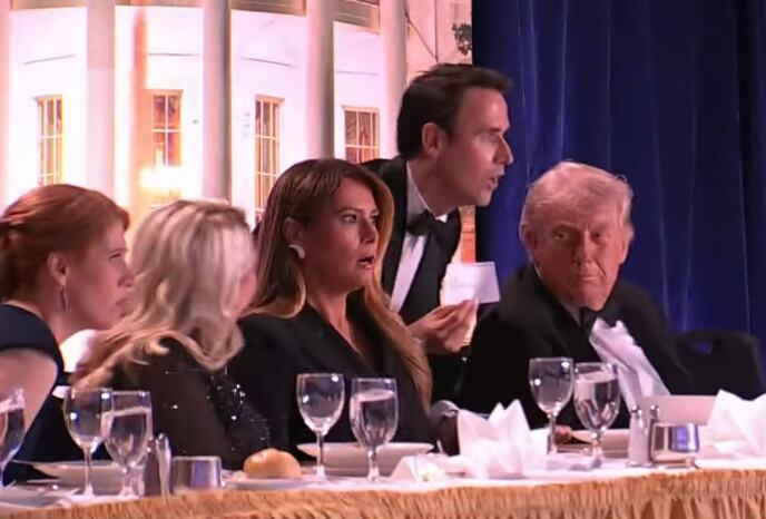 На видеото од моментот кога се слушаат истрелите, може да се види исплашеното лице на Меланија Трамп, која потоа се спушта под масата, а агентите на Тајната служба го зграпчуваат американскиот претседател и двајцата се евакуирани од салата.