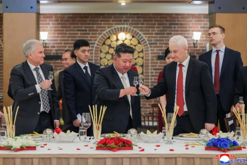 Во нов знак на поддршка за Русија, Ким Џонг Ун разговараше за меѓународната политичка ситуација со рускиот министер за одбрана Андреј Белоусов, кој, заедно со остатокот од руската делегација, присуствуваше на церемонијата на завршување на споменикот на севернокорејските војници загинати во борбите во рускиот регион Курск, каде што украинските сили започнаа напад во 2024 година.