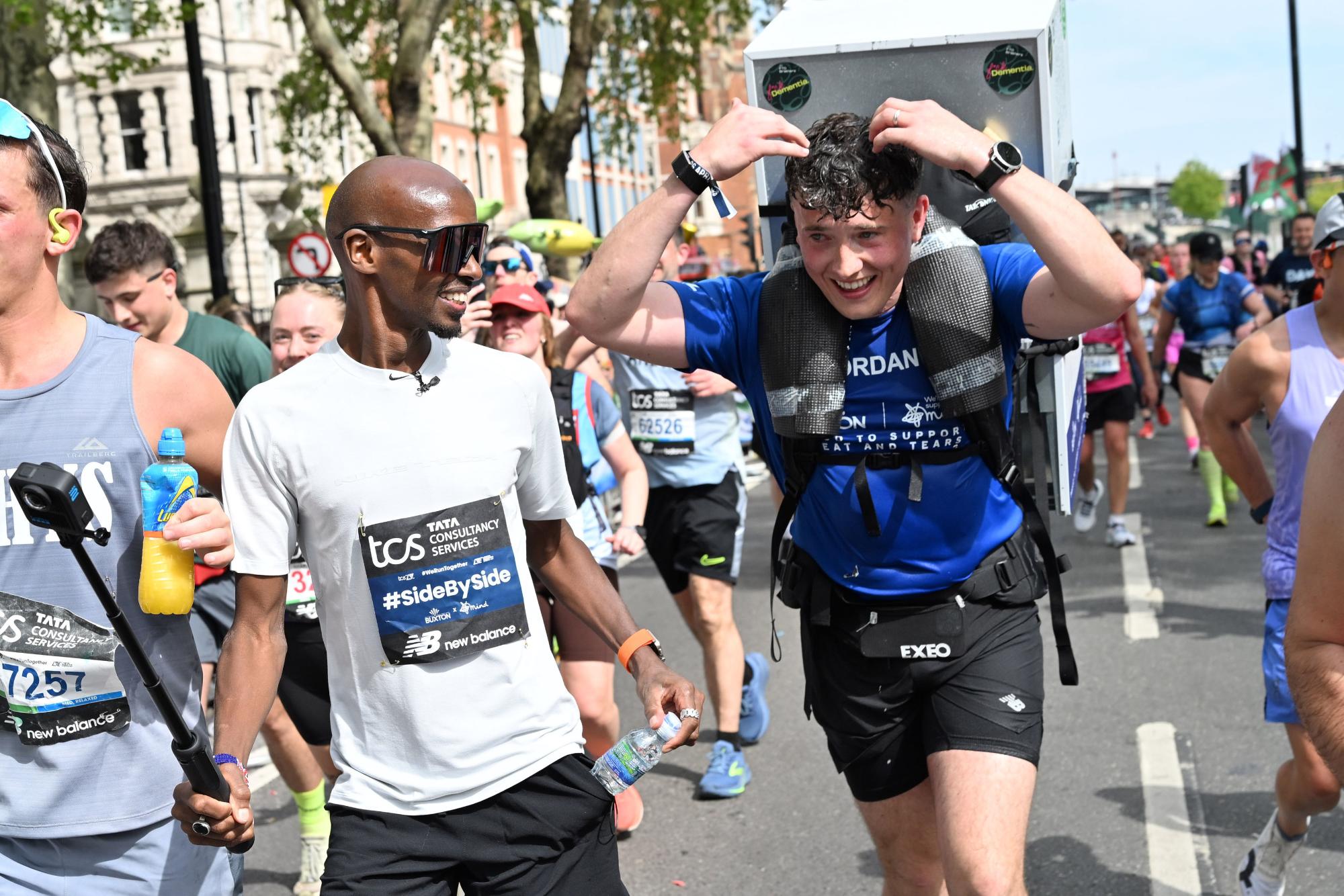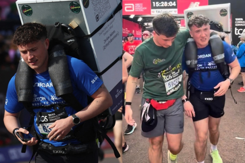 Учесникот на маратонот во Лондон, Џордан Адамс, ја истрча трката со фрижидер на грбот.