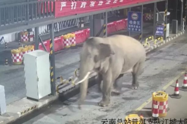 Граничен премин во Кина доби неочекуван посетител. Азиски слон лежерно „сврати“ на привремен граничен премин во провинцијата Јунан, целосно игнорирајќи ги бариерите, јавува „CGTN“.