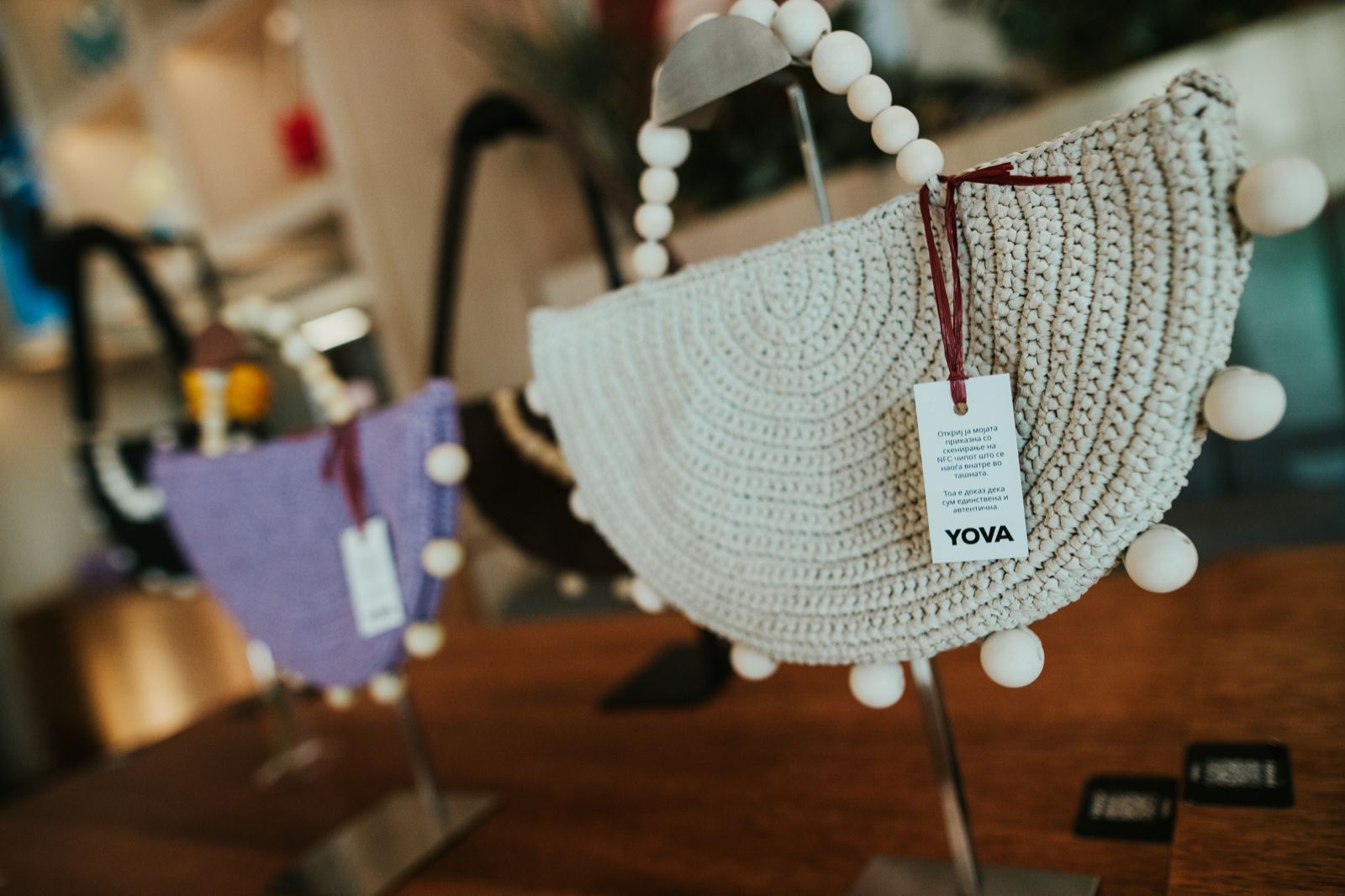 Чантите се изработени рачно, со посебен фокус на техниката на хеклање, која YOVA ја развива во современ моден занает. Преку внимателно одбрани премиум материјали и развиени производствени стандарди, секој модел комбинира традиција и современ дизајн, создавајќи производ со долгорочна вредност.