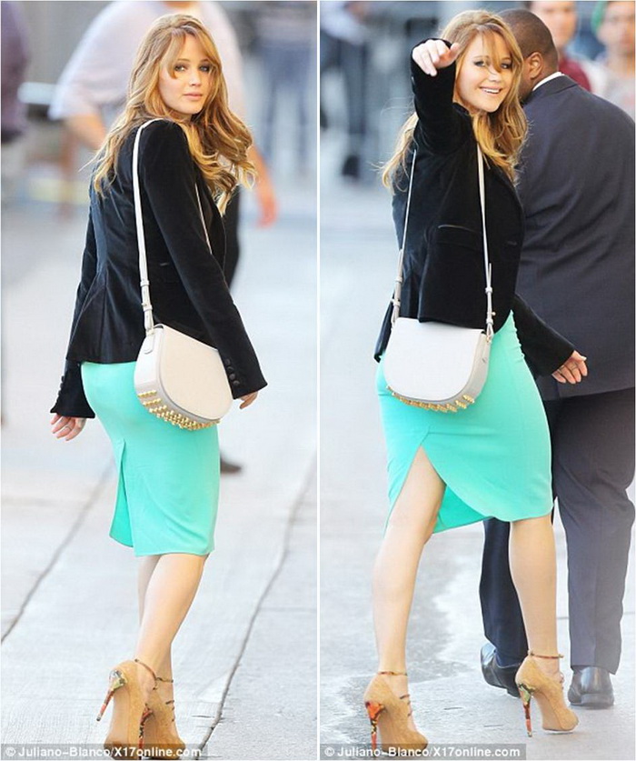 За гостувањето во шоуто актерката облекла жолт тесен фустан без ракави, а својот изглед го надополнила со гламурозни високи потпетици и дискретна шминка, а во студиото дошла облечена во фустан во небесно сина боја.