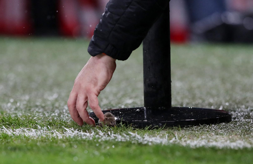 Како што пренесува "The Sun", овој неочекуван „гостин“ дополнително ги разгоре дискусиите за проблемот со штетници на историскиот стадион.